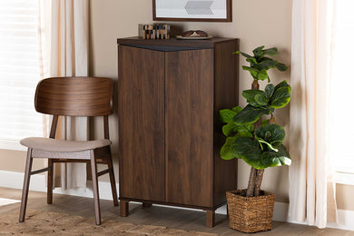 Baxton Studio Salma Modern and Contemporary Walnut Brown Finished Wood 2-Door Shoe Storage Cabinet
