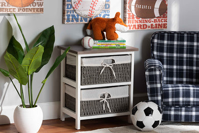 Baxton Studio Diella Modern and Contemporary Multi-Colored Wood 2-Drawer Storage Unit with Basket
