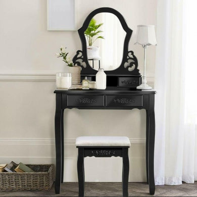 Vanity Makeup Dressing Table with a Mirror and 4 Drawers-Black
