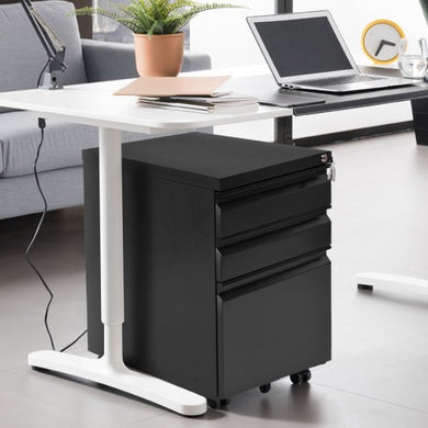 3 Drawers Rolling File Storage Cabinet-Black