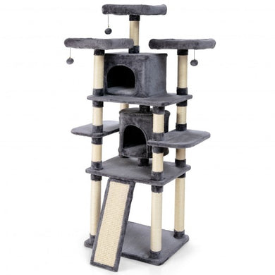 67" Multi-Level Cat Tree with Cozy Perches Kittens Play House-Light Gray