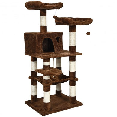 55" Multi-Level Kitten Activity Tower with Hammock-Brown