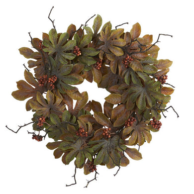 • 24" Fatsia with Berries Autumn Artificial Wreath