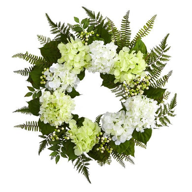 • 24" Hydrangea With White Roses Wreath 4899 By Nearly Natural