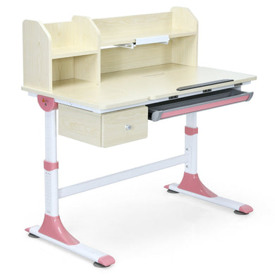 • Adjustable Height Kids Study Desk Drafting Table with Bookshelf and Hutch-Pink