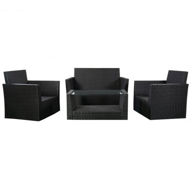 • 4 pcs Rattan Patio Cushioned Sofa - Black
