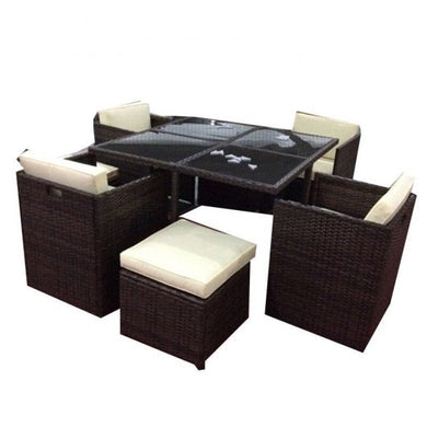 • 9 pcs Cushioned Dining Table Rattan Furniture Set