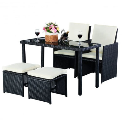 • 5 pcs Outdoor Patio Cushioned Rattan Dining Table Chair Set