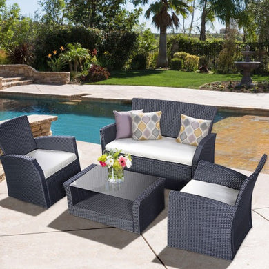 • 4 pcs Outdoor Wicker Rattan Cushioned Patio Seat