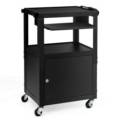 • Mobile Steel Height Adjustable AV Presentation Cart w/ Locked Cabinet & Keyboard