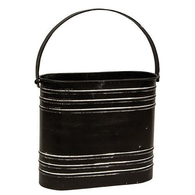 Black Distressed Metal Oval Flower Bucket With Handle