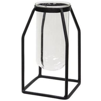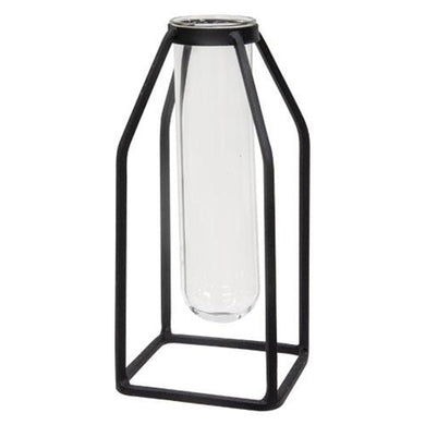 Glass Tube Vase w/Metal Frame Wide