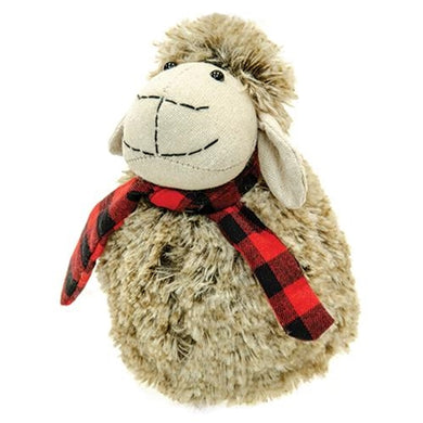 Plush Furry Sheep w/Red & Black Plaid Scarf Large