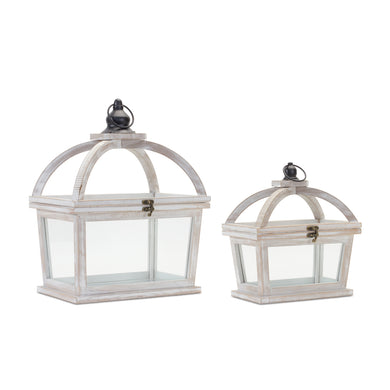 Tapered Wood Lantern with Open Lid (Set of 2)