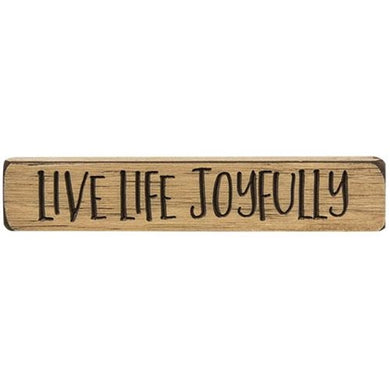 Live Life Joyfully Engraved Block 9" Cream (Pack of 4)