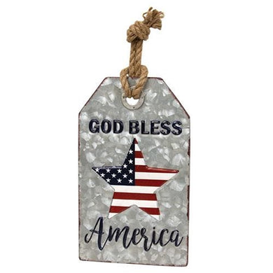 God Bless America Metal Tag w/ Jute