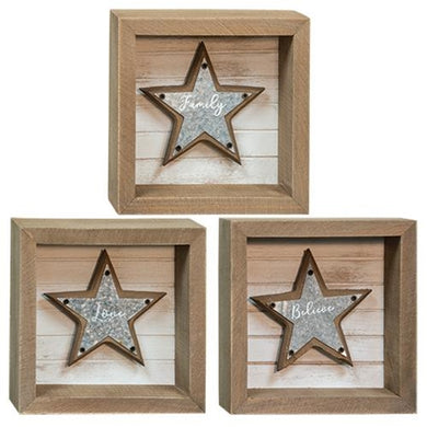 *Believe Family Love Star Box Sign 3 Asstd. (Pack of 2)