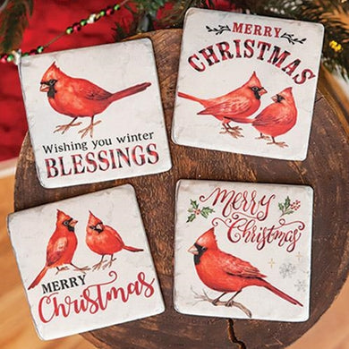 4/Set Christmas Cardinals Resin Coasters (Pack of 2)