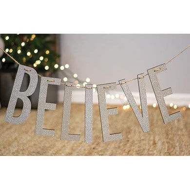 "Believe" Silver Wood Garland Small (Pack of 4)