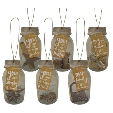 Ah-Mason Jar Ornament 6 Asstd. (Pack of 4)
