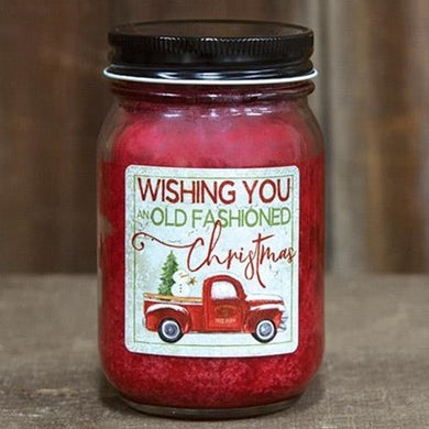 Hollyberry Jar Candle W/Red Truck Old Fashioned Christmas G20013