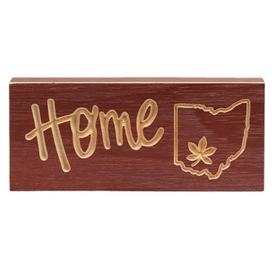 Engraved Home Block w/Ohio & Buckeye Leaf Barn Red (Pack of 4)