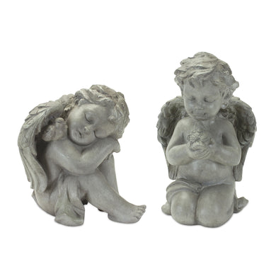 Sitting Cherub Angel Figurine with Bird Accent (Set of 2)