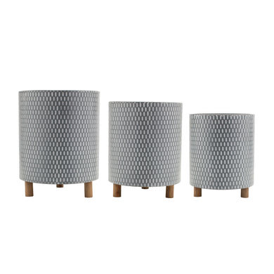 Iron Metal Planter with Geometric Design and Wood Legs (Set of 3)