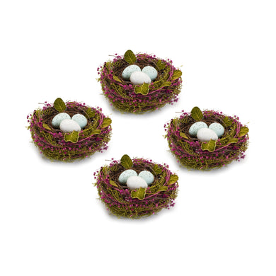 Natural Twig Bird Nest with Speckled Egg Accent (Set of 4)