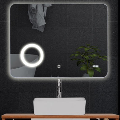 LED Touch Button Wall-Mounted Makeup Mirror w/ Clock