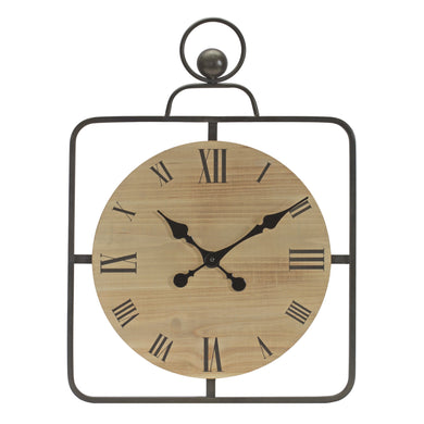 Wooden Wall Clock in Iron Frame 16"D