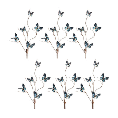 Blue and Black Wire Butterfly Spray (Set of 6)
