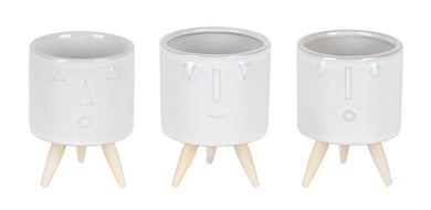Porcelain Face Planter with Wooden Legs (Set of 3)