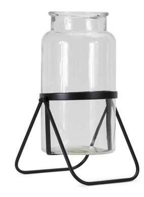 Modern Jar Vase in Meatl Stand (Set of 2)