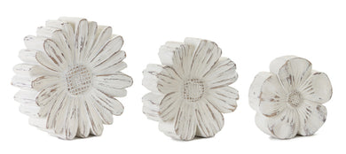 White Washed Stone Flower DŽcor (Set of 3)