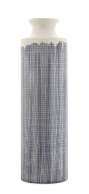 Terra Cotta Floor Vase with Navy Criss Cross Pattern 24.75"H