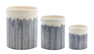 Terra Cotta Crock with Navy Criss Cross Pattern (Set of 3)