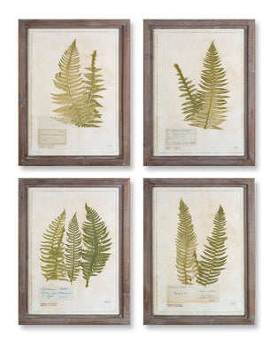 Wood Framed Fern Encyclopedia Prints Under Glass (Set of 4)