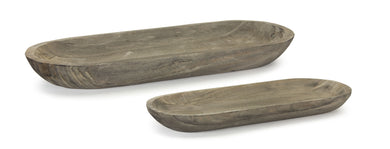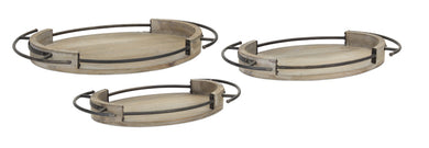 Oval Wooden Tray with Metal Handle Accent (Set of 3)