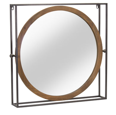 Wooden Circle Mirror with Iron Frame 24.5"H
