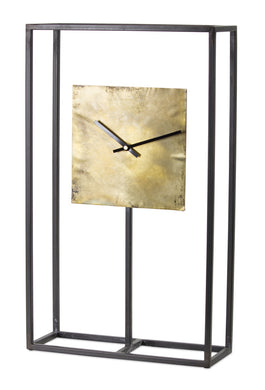 Wood Square Clock on Rustic Metal Stand 17.5"H