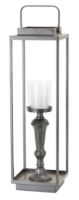Antique Metal Candle Holder with Glass Hurricane 26.25"H