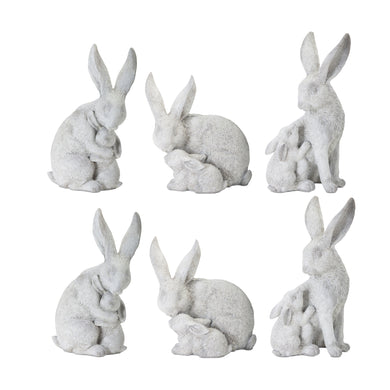 White Stone Garden Rabbit with Baby Bunny Figurine (Set of 6)