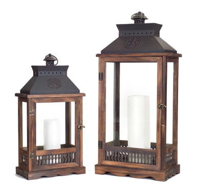 Ornate Wood and Metal Lantern (Set of 2)