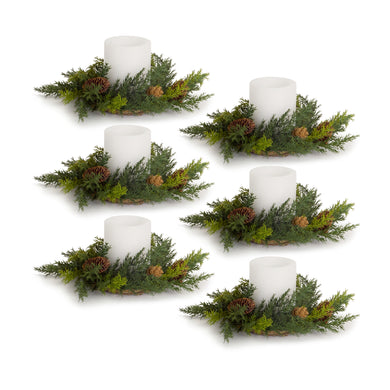 Arborvitae Foliage Candle Ring with Pinecone Accents (Set of 6)