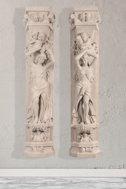 Pair Roman Girl Pilasters Stone Cast
