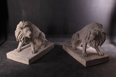 Symmetrical Pair of 39 Inch Entry Lions in Rough Stone