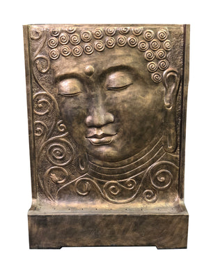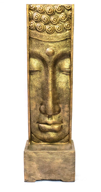 Long Face Buddha Fountain With Pump Glossy Gold Black