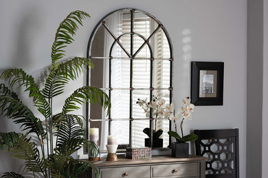 Baxton Studio Tova Vintage Farmhouse Antique Silver Finished Arched Window Accent Wall Mirror