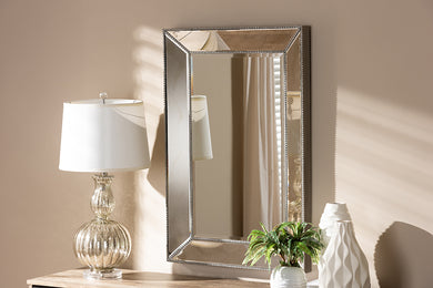Baxton Studio Romina Art Deco Antique Silver Finished Accent Wall Mirror